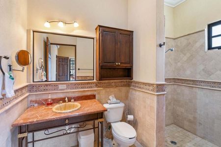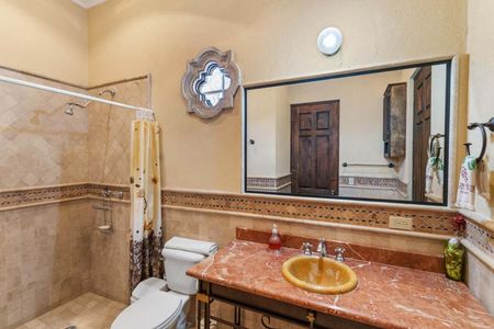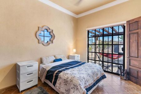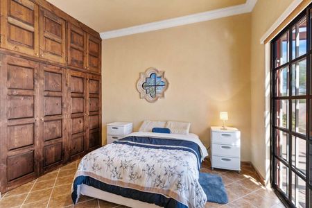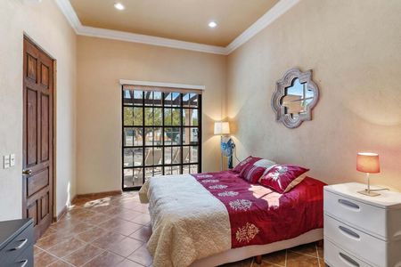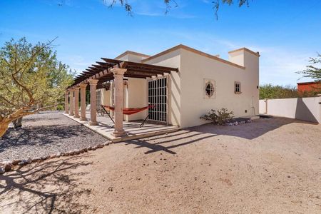 Entre, donde el encanto colonial mexicano atemporal se fusiona con la serenidad de la vida en el desierto. Esta hermosa casa de 2 recámaras y 2 baños ofrece un acogedor diseño abierto, realzado por altos techos con cúpula que aportan elegancia a su espacio vital. La cocina gourmet cuenta con encimeras de granito, elegantes gabinetes de madera y una isla ideal para el entretenimiento y la vida diaria. Amplios ventanales arqueados inundan el interior de luz natural. La suite principal ofrece un remanso de paz con baño privado y ducha, mientras que el amplio dormitorio de invitados con baño privado garantiza la comodidad de la familia o las visitas. En el exterior, un espacioso patio cubierto es perfecto para el entretenimiento. Ubicada en un amplio terreno completamente cercado, hay amplio espacio para construir una piscina, una casita o un garaje, convirtiendo esta propiedad en su oasis personal con infinitas posibilidades.