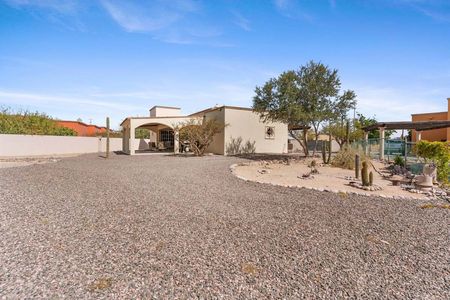 Step inside, where timeless Mexican colonial charm meets serene desert living. This beautiful 2BR, 2BA home offers an inviting open layout, highlighted by soaring ceilings with copola that adds elegance to your living space. Gourmet kitchen features granite countertops, rich wood cabinetry, & an island ideal for entertaining & daily life. Oversized arched windows flood the interior with natural light. Primary suite offers a quiet retreat with a private bath & step-in shower, while the generous ensuite guest bedroom ensures comfort for family or visitors. Outside, a spacious covered patio is perfect to entertain. Set on an expansive fully fenced lot, there is ample room to build a pool, casita, or garage, making this property your personal oasis with endless possibilities.